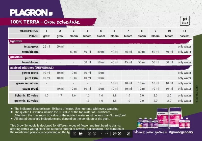 - Add a maximum of 5ml. Terra Bloom to 1l. water (1:200). Apply with every watering during the flowering phase!
