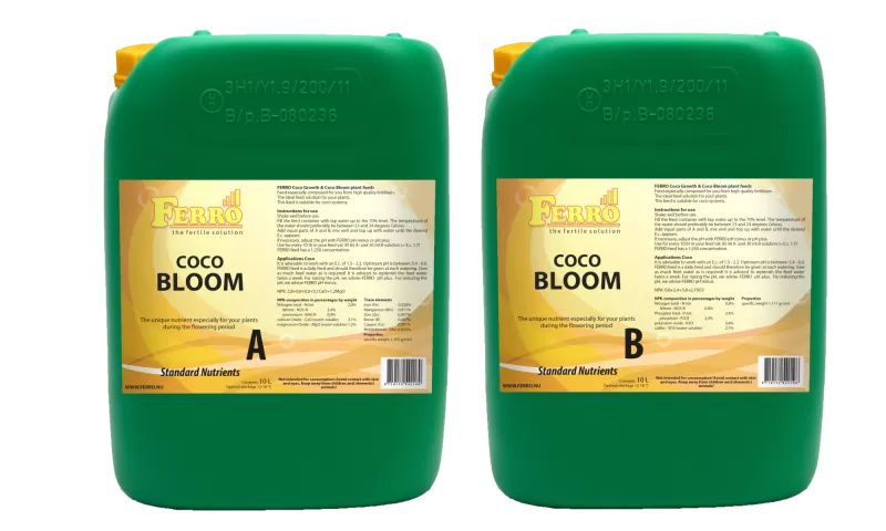 Ferro COCO BLOOM A&B is a complete two-component fertilizer for the flowering phase of plants grown in coconut substrate . For perfect results , use this high-quality product with every watering , throughout the flowering phase!