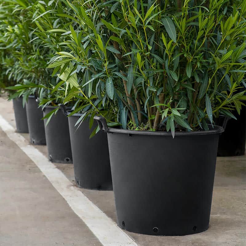 Здрава и практична саксия с вместимост 43 литра, снабдена с удобни странични дръжки — идеална за големи растения и лесно преместване 🌿